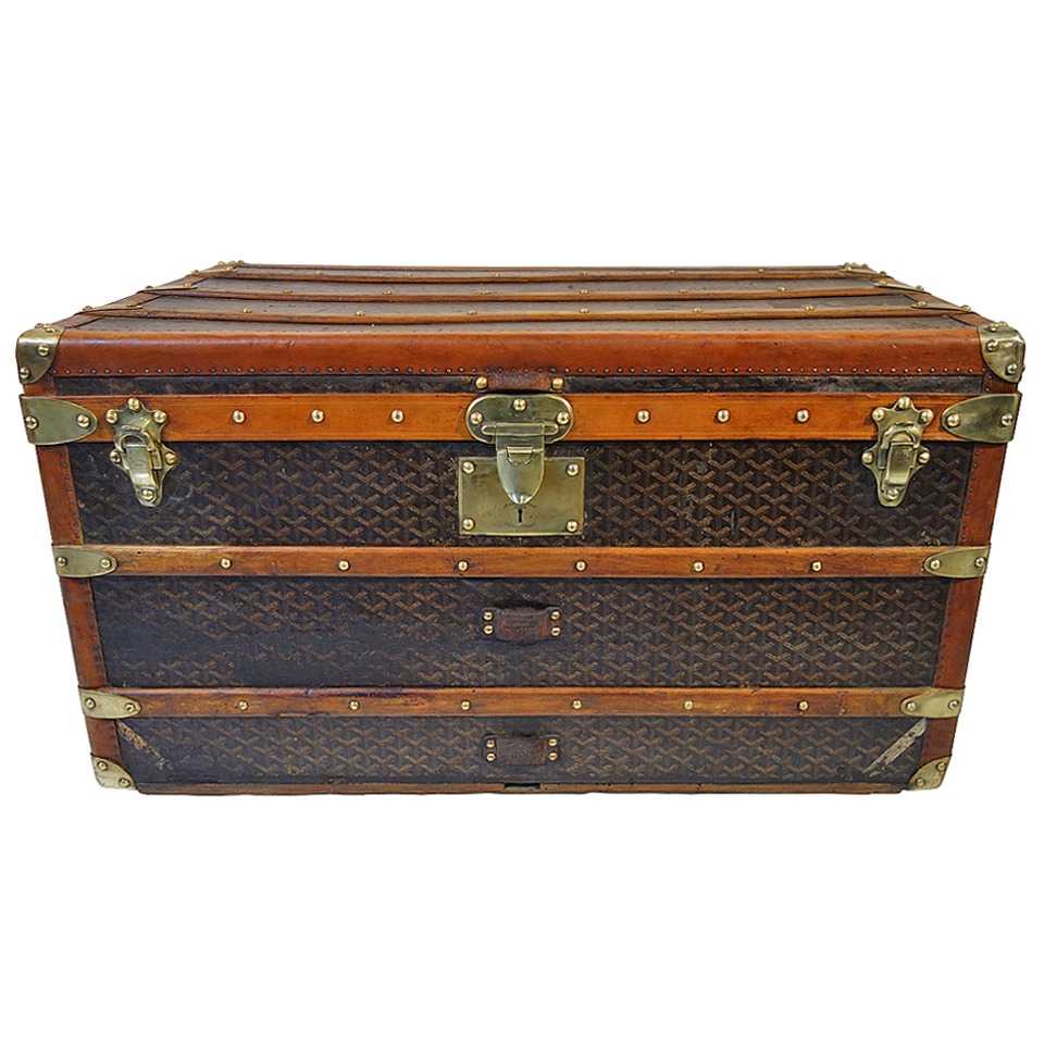 1930s goyard chevrons canvas steamer trunk / malle