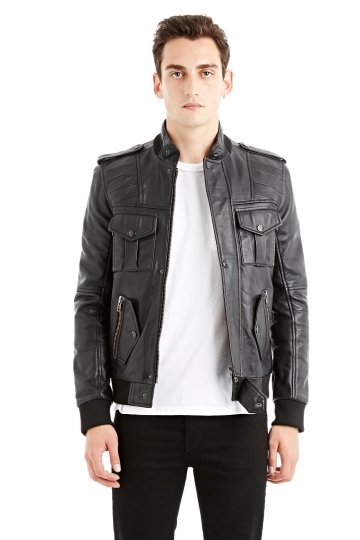 • Veste en cuir noir à poches
