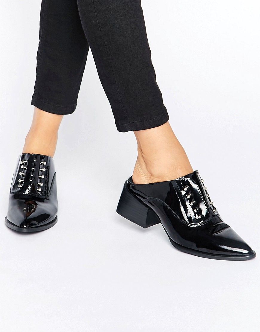 Chaussures par Sol Sana, Tige en cuir verni, Style à enfiler, Barre percée, Bout pointu, Talon mi-haut rainuré, Traiter avec un agent protecteur pour cuir, Tige : 100% cuir véritable, Talon : 5 cm (2 po). À PROPOS DE SOL SANA Weaving together creator Sara Caverley's love of vintage and bold modern styles, Australian-based label Sol Sana was launched in 2010. La marque met l'accent sur le confort et la résistance, tout en se dotant des meilleurs matériaux ; attendez-vous à découvrir des chaussures ornées de barrettes, des escarpins audacieux et des bottines fabriquées dans des cuirs de haute qualité.