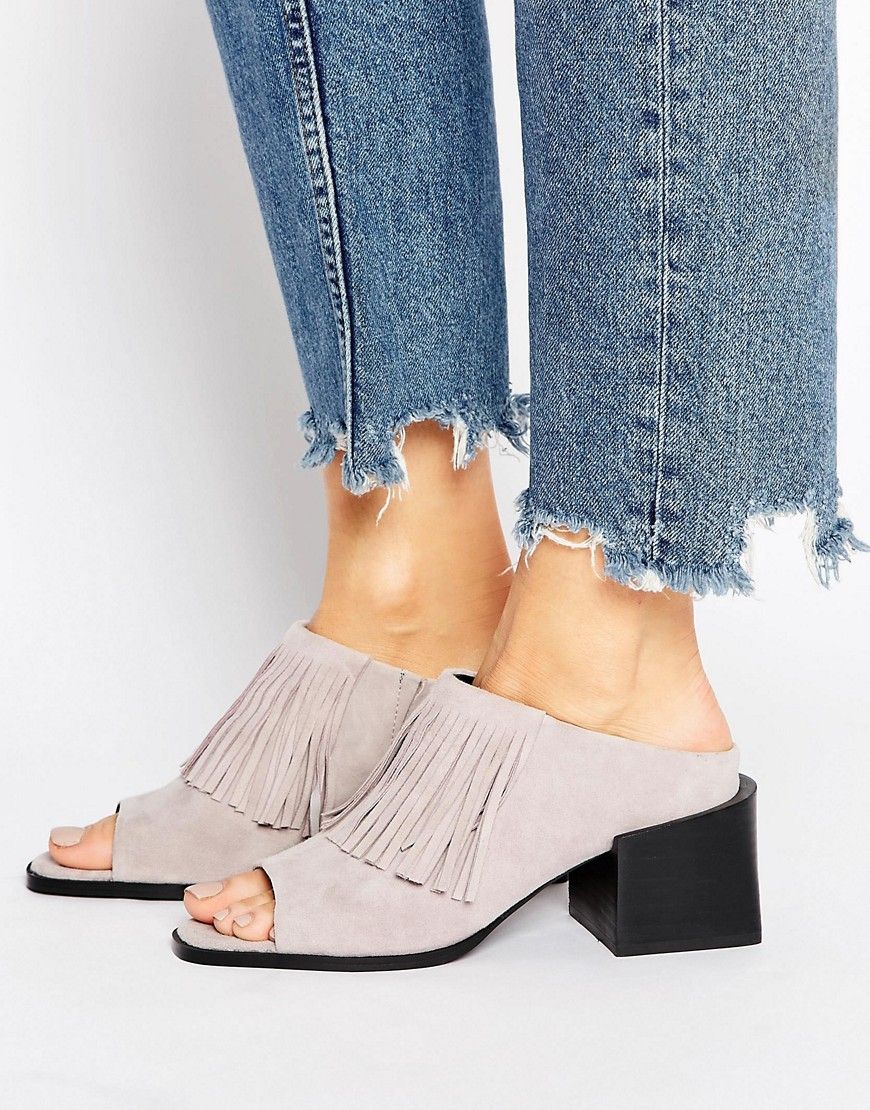 • Sol Sana - Mules à talons mi-hauts en franges en daim - Gris