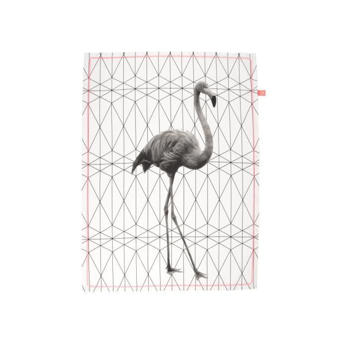 • Torchon Flamant rose à pois & fluo coton