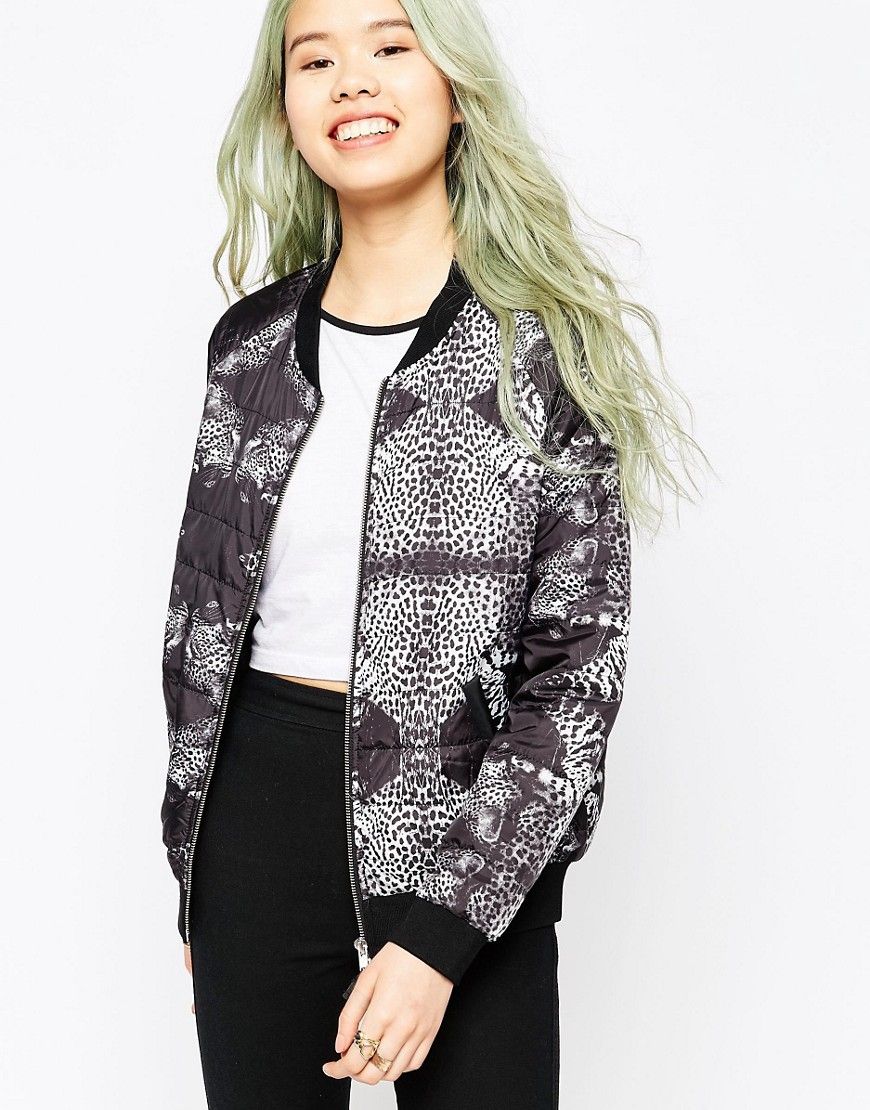 • A Question Of - Blouson aviateur à imprimé léopard - Noir et blanc