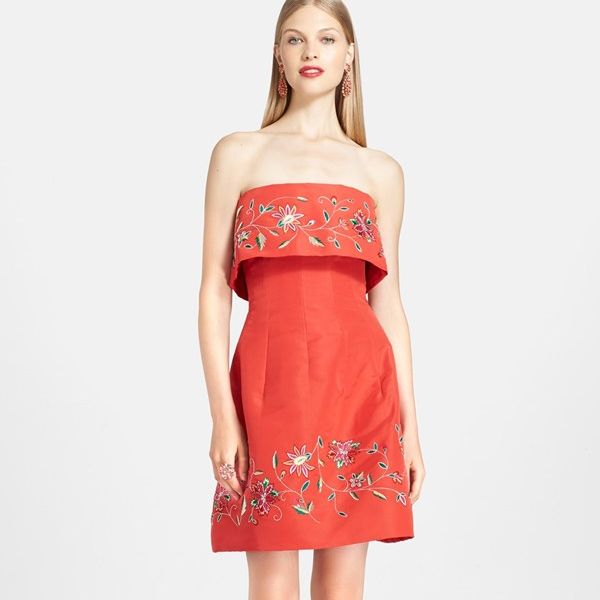 • Oscar de la Renta Embroidered Strapless Silk Dress