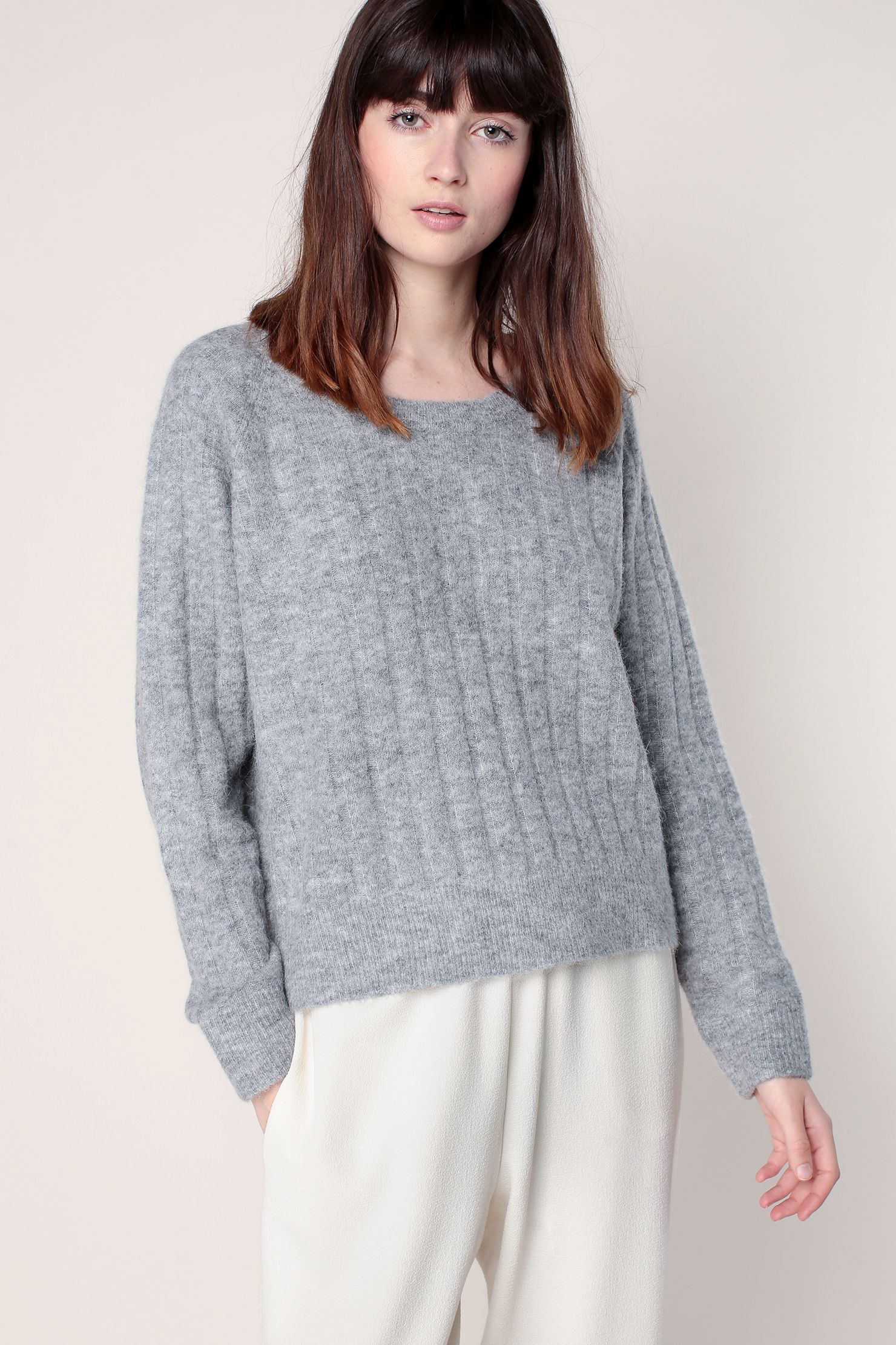 • Samsøe Pull ample court en laine gris chiné